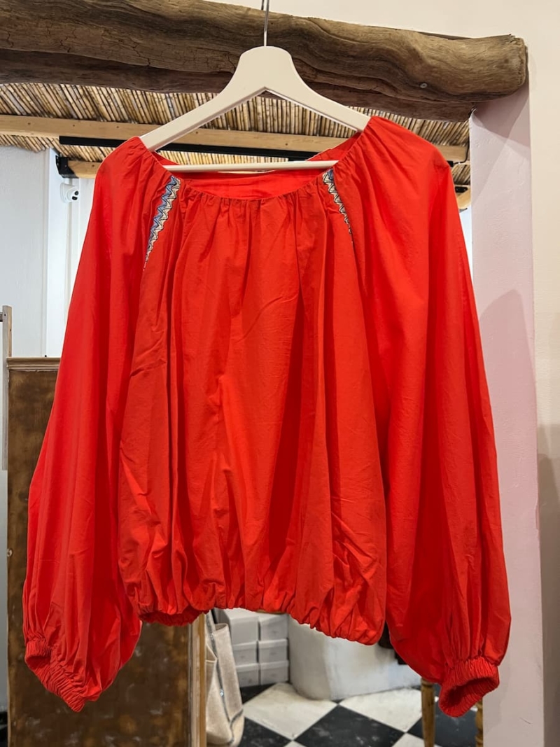 Devotion Twins blouse Roza accented with tasteful black details, pairs perfectly with anything from denim to silks, ensuring it becomes your go-to piece for any occasion. Elevate your ensemble with this versatile staple that blends casual comfort with an air of sophistication.