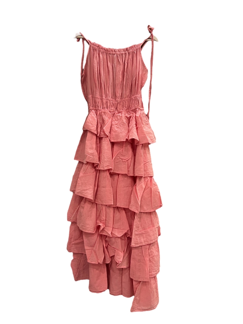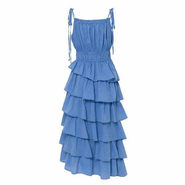 The Ruffle Cotton Dress features a design that effortlessly combines sophistication with a touch of playful femininity. It is designed to offer both comfort and style, making it suitable for a wide range of settings, from casual outings to special occasions.