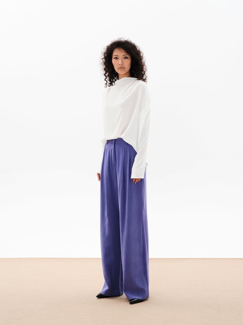 A classic pair of pants made of luscious and supple viscose with a cupro touch, the “Draped Out” pants, are a wardrobe staple. Easy to combine with any outfit from day-to-night, they have pleats at the front and belt loop if you desire to pair it with a one. A timeless design that will most definitely become your winter go-to item.