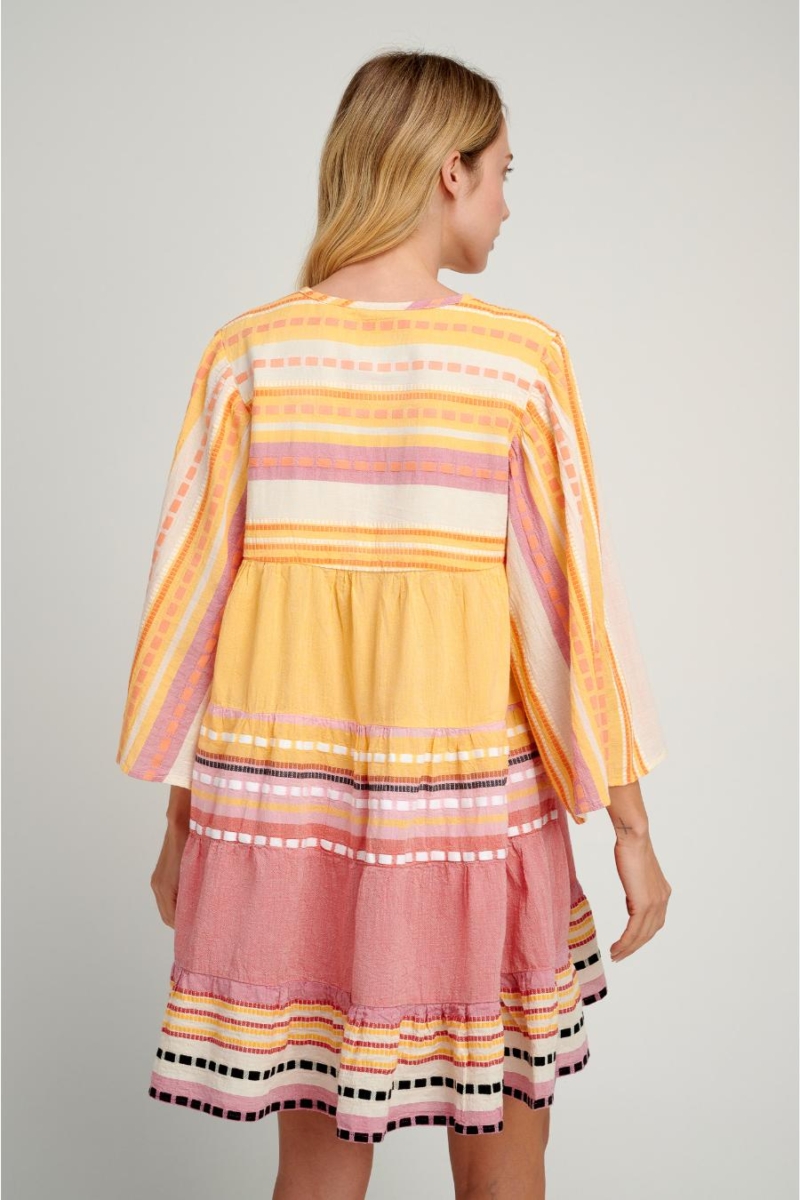 Discover the S25P1057 Alonissos Short Dress by Pearl & Caviar, a stylish 100% cotton boho tunic with pastel stripes, a relaxed fit, and elegant detailing. Perfect for summer, vacations, and effortless everyday wear.