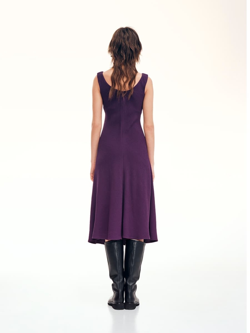 Embrace timeless elegance with our Sleeveless Sheath Dress in a luxurious deep purple hue. Crafted from sumptuous viscose, this essential wardrobe piece promises a seamless transition from a day at the office to an enchanting evening out