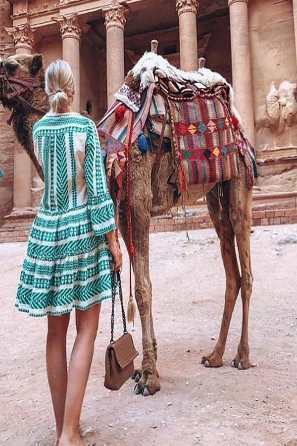 The Signature Ella Dress by Devotion Twins in the classic green and ecru colorway is a beautifully designed, boho-inspired piece. This dress features a bold geometric pattern with triangles and lines, creating a striking visual appeal. Its relaxed, tiered silhouette gives it a comfortable, flowy fit, while the long sleeves with flared cuffs add an elegant touch. The dress has a flattering V-neckline with a button closure, making it perfect for both casual and semi-formal occasions. Crafted with attention to detail, it combines style, comfort, and versatility, making it a timeless addition to any wardrobe.